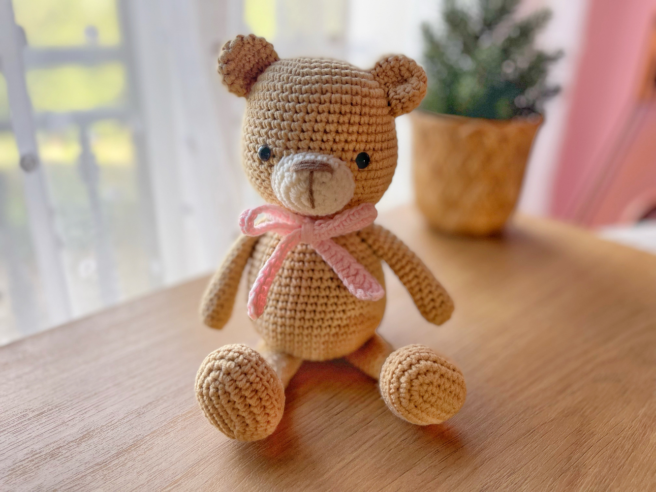 El Amigurumi Osito Dulcito se hace a mano y está tejido con mucho mimo con algodón blandito. Lleva Ojos de Seguridad.
